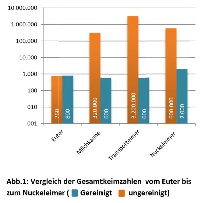 Und noch Schlimmeres: In den Behältern tauchten plötzlich Kolibakterien und Enterokokken auf. Die kommen nicht aus der Milch, sondern sind Zeichen von Fäkalienrückständen. Ein deutliches Zeichen für mangelnde Reinigung von Transportbehältern und Eimern.