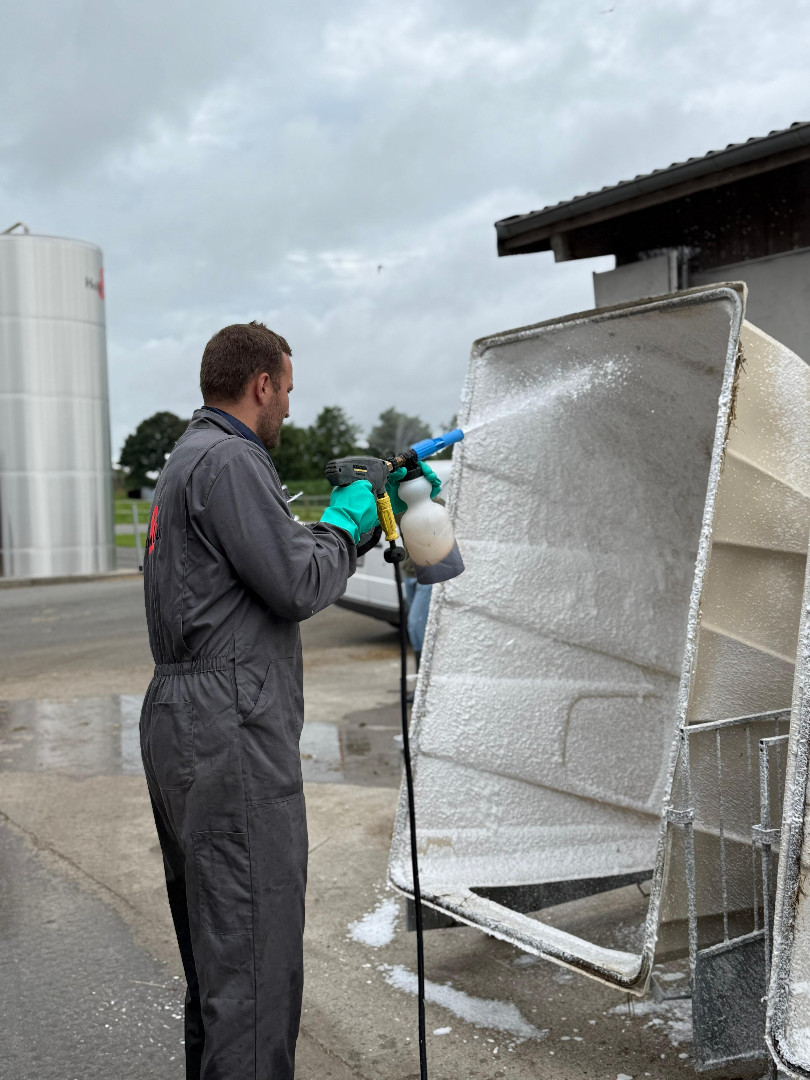 Ganz zum Schluss noch ein Wort zur Reinigung der Kälberhütten und -buchten.